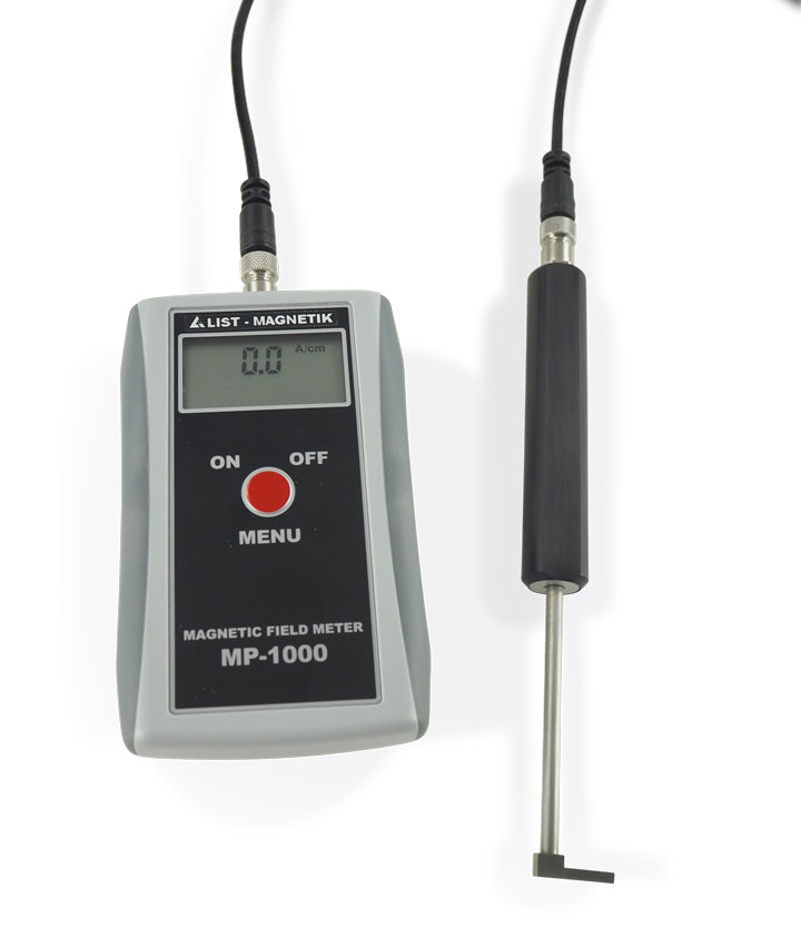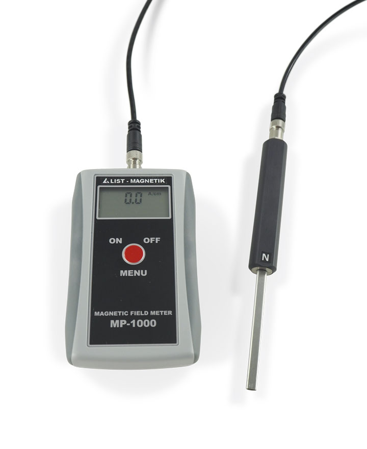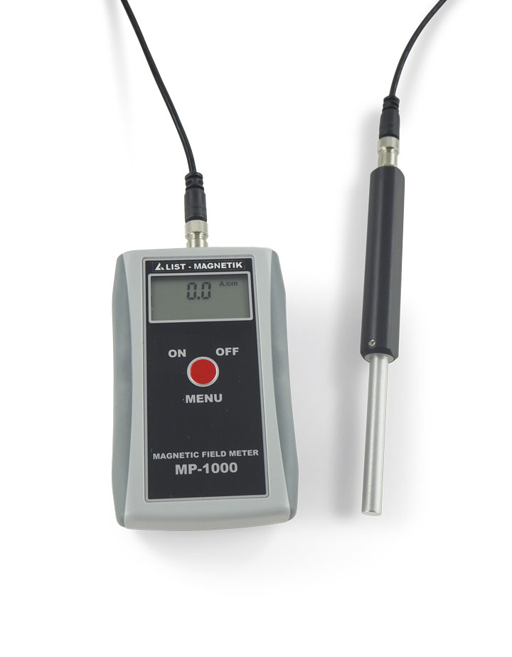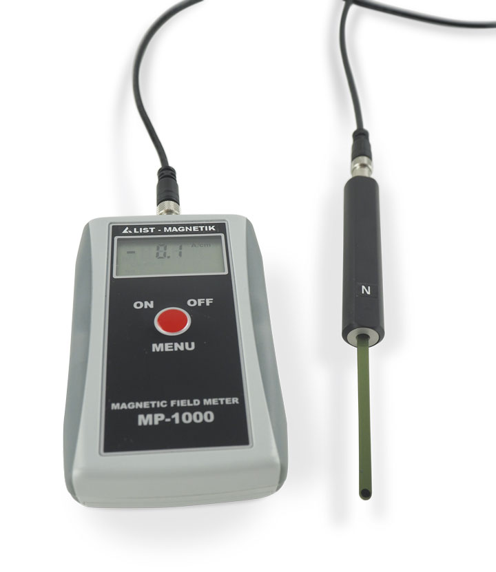 You can detect small differences in the strength of the magnetic field when measuring it using a magnetic field meter, magnetometer, gaussmeter, or teslameter. All of these terms describe the same thing. List-Magnetik's magnetic field measuring devices have a long service life and provide reproducible field strength values during magnetic field testing, from low field values just above the earth's magnetic field, through residual magnetism/remanence with low A/cm or Gauss/Oersted residual magnetic field values, to peak fields.